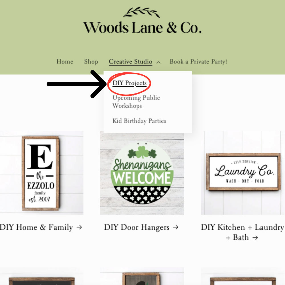 Begin by heading to the "DIY Projects" link on the menu under "Creative Studio". Here you will see all of the project choices to choose from.