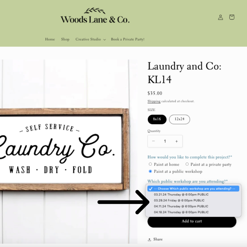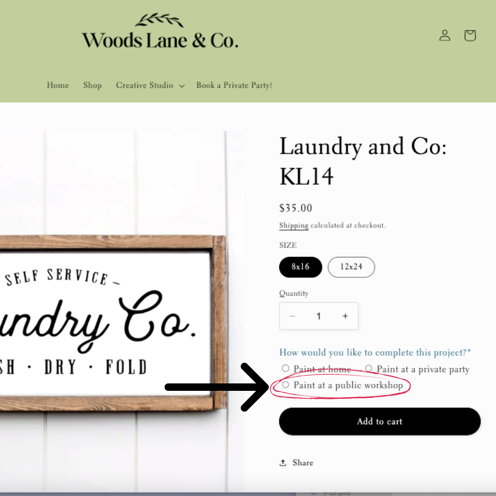 Once you have chosen your design, click on the "Paint at a public workshop" option.