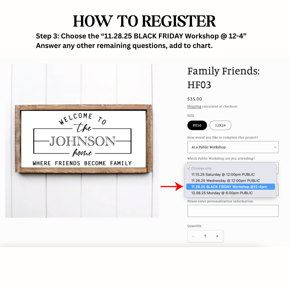 👉 Choose and pay for your project at least 48 hours in advance, then stop in on Friday Nov. 28th anytime between 12 PM and 4 PM to create!