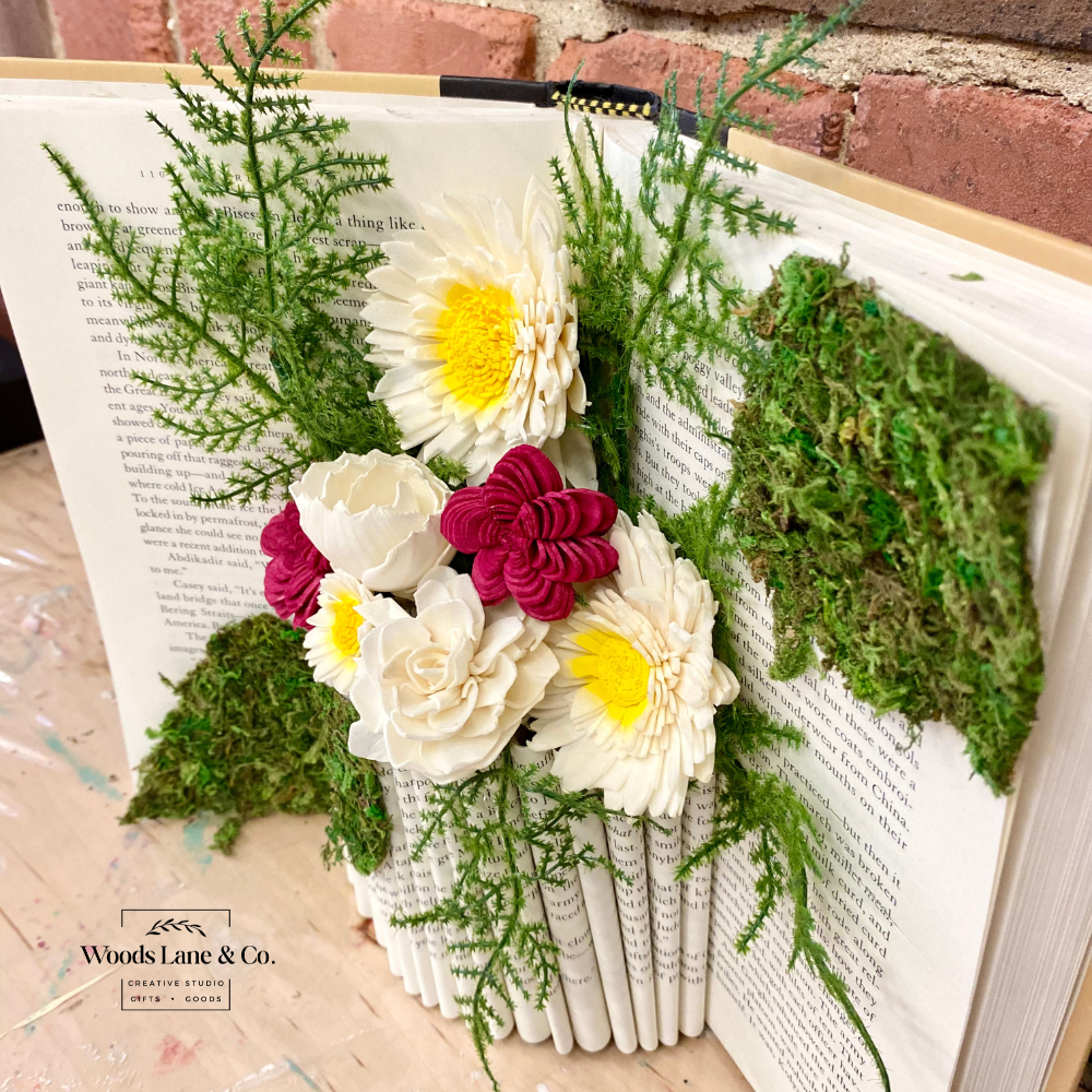In this hands-on workshop, you’ll learn how to repurpose an old hardcover book into a beautiful, vintage-inspired vase. We’ll guide you step-by-step as you transform the pages into a sculpted display and add a sweet set of faux flowers to complete your masterpiece.
