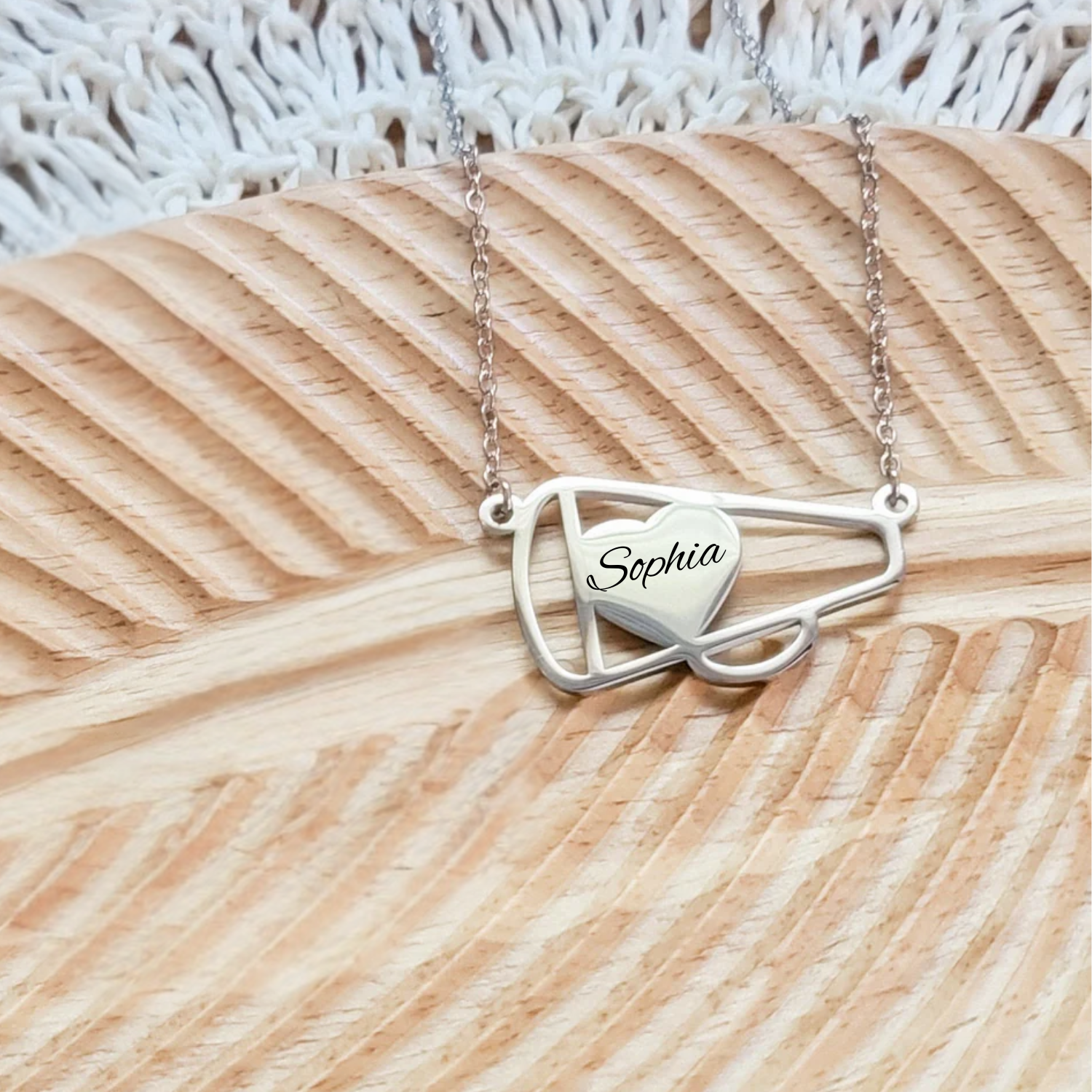 Show your spirit with our Custom Engraved Megaphone Necklace—a bold and meaningful piece for cheerleaders, coaches, and anyone who loves to shine loud and proud. Thoughtfully designed for everyday wear or gifting, this necklace is a beautiful symbol of encouragement, teamwork, and celebration.