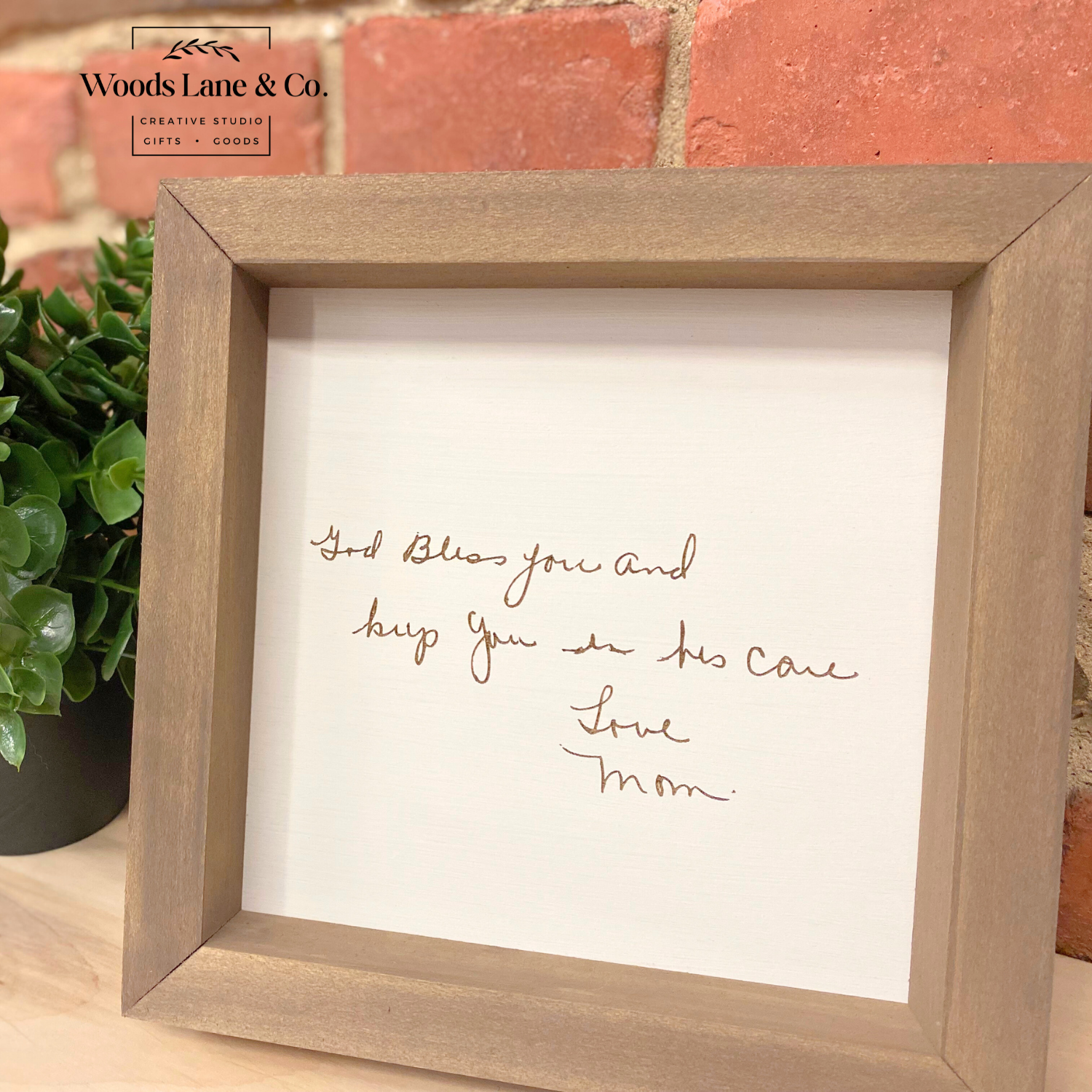 Turn a loved one’s handwriting into a timeless keepsake. Our Custom Handwriting Engraved Signs are created by engraving your uploaded handwriting onto a clean white backer and finished with a beautiful brown wood frame for a warm, classic look.