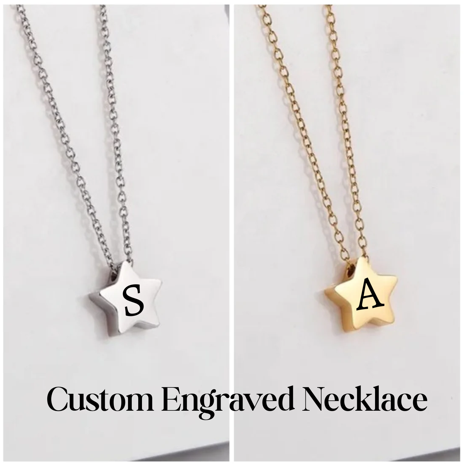 Shine bright with our Custom Engraved Star Necklace, a delicate piece designed to celebrate your unique story. Perfect for everyday wear or gifting, this timeless necklace adds a personal touch to any outfit.
