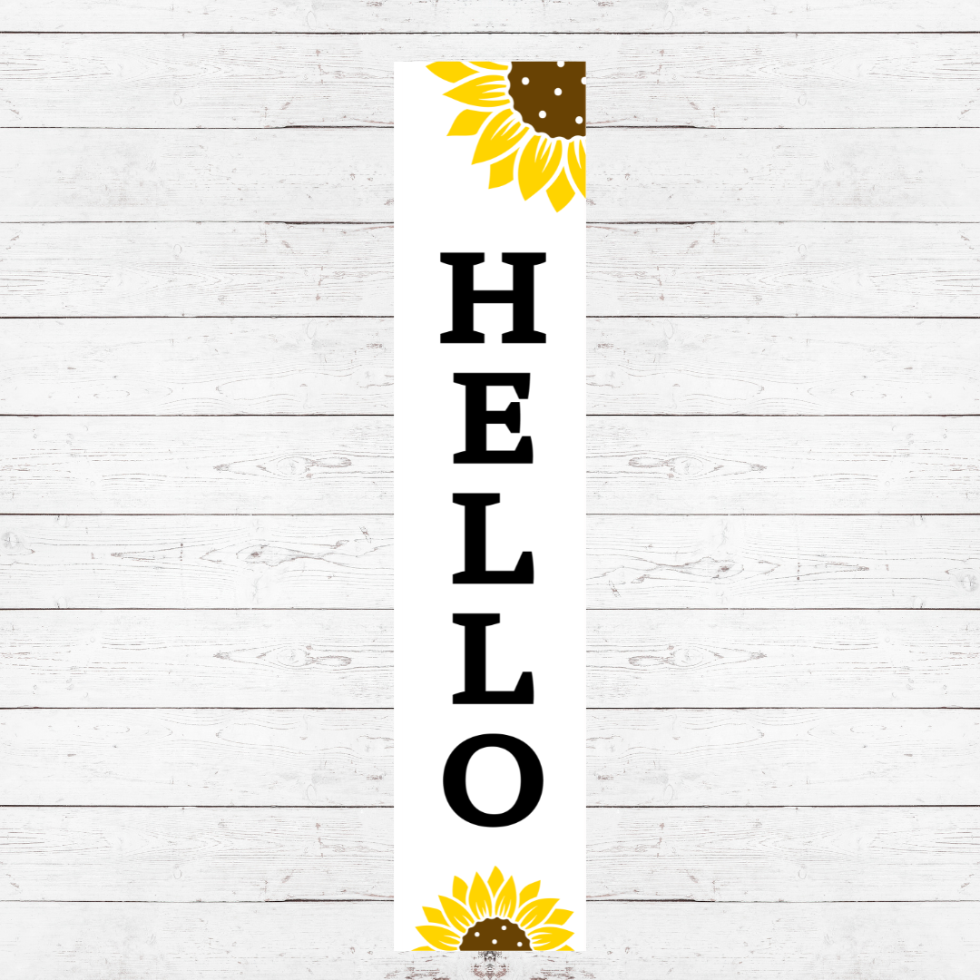 This porch sign is made of solid wood and measures approximately 9.5" wide by 4 feet tall. Porch signs are painted using a vinyl stencil in any color combination the painter chooses!