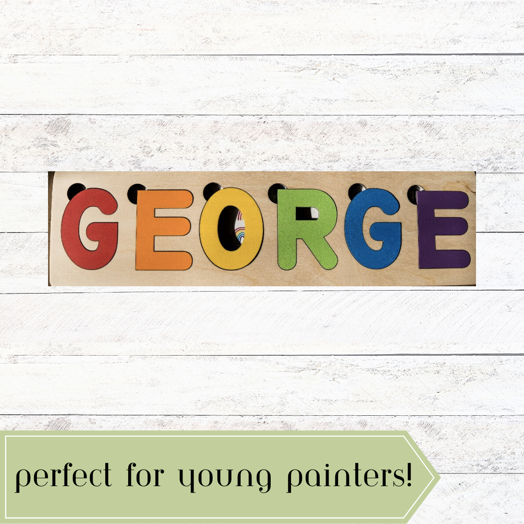 This personalized name puzzle can be customized with any paint color you choose! And is a great product choice for all ages, but especially for young painters (5-8 years old)!
