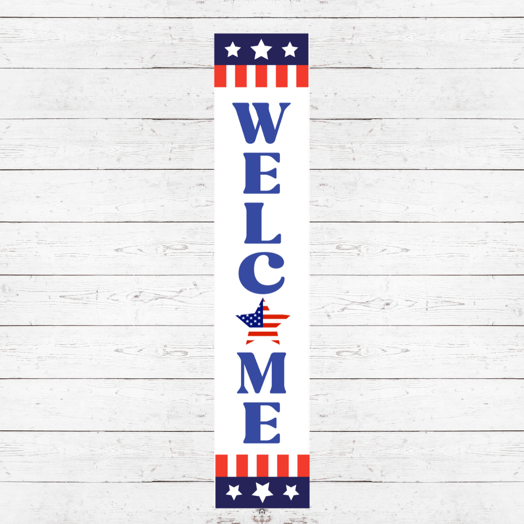 This porch sign is made of solid wood and measures approximately 9.5" wide by 4 feet tall. Porch signs are painted using a vinyl stencil in any color combination the painter chooses!