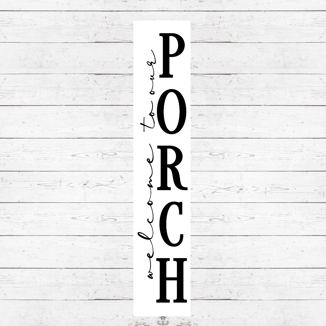 This porch sign is made of solid wood and measures approximately 9.5" wide by 4 feet tall. Porch signs are painted using a vinyl stencil in any color combination the painter chooses!